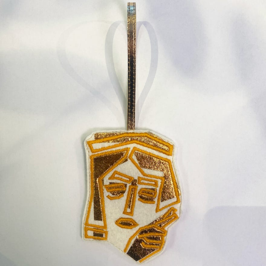 Grosse Anhänger Xore beidseitig auf Filz bestickt