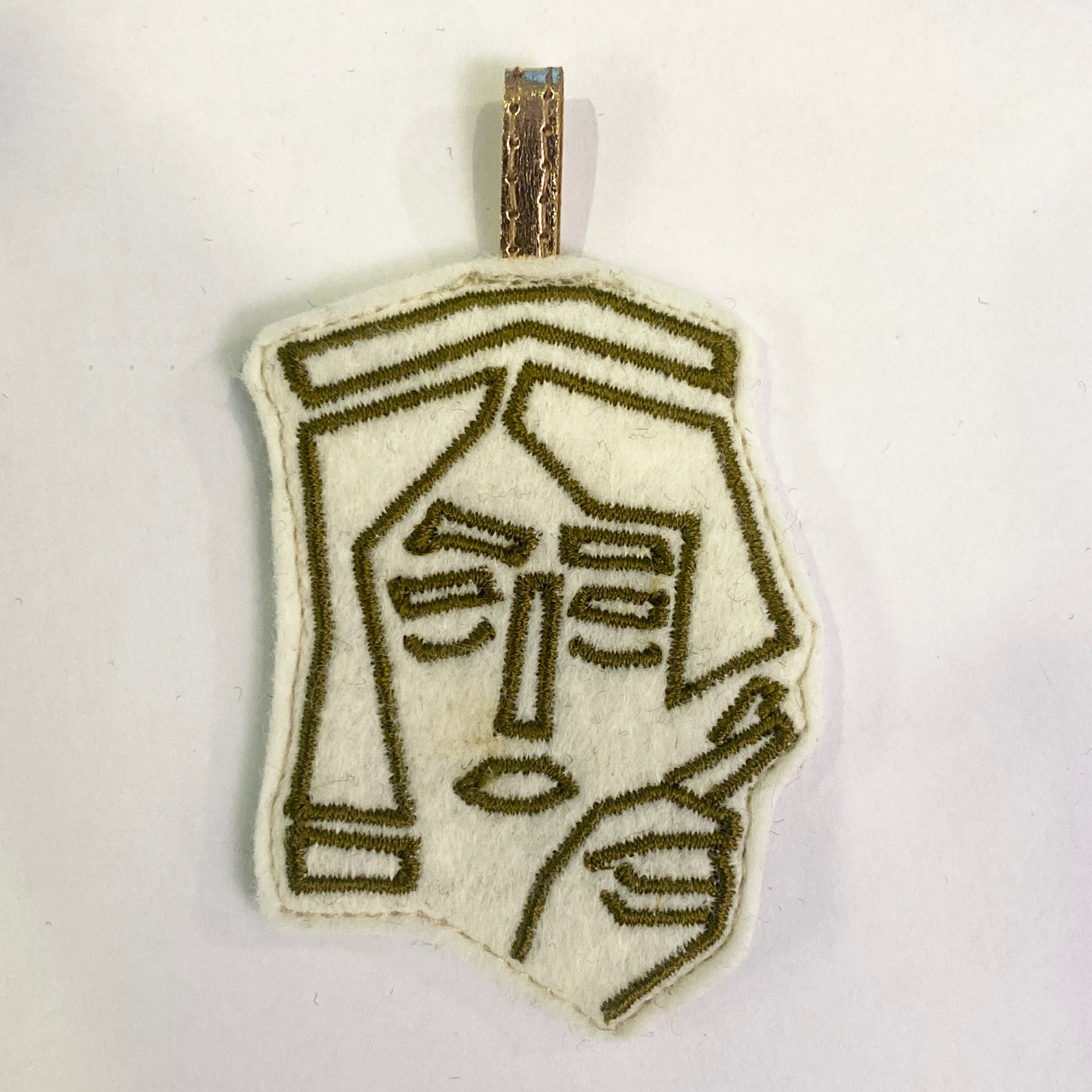 Kleiner Anhänger Xore ecru-oliv beidseitig bestickt