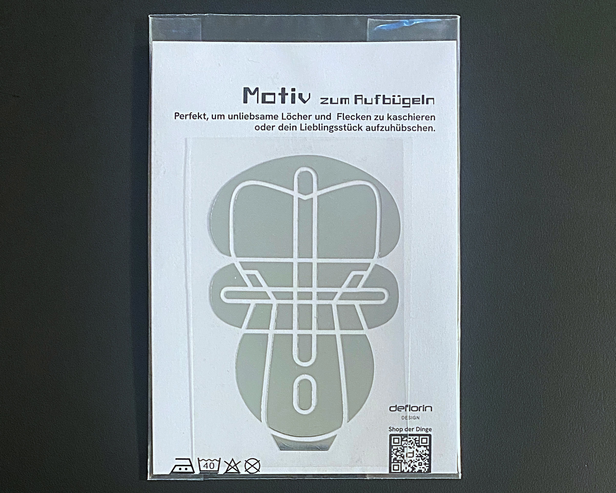 Das Motiv kann ganz einfach mit einem normalen Bügeleisen ohne Dampf aufgebügelt werden (eine ausführliche Anleitung befindet sich in der Verpackung).